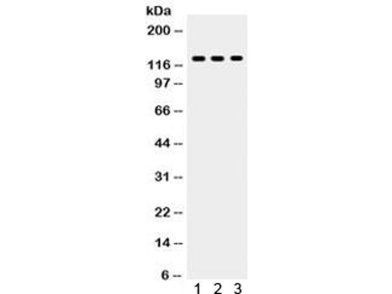 Optimal dilution of the TLR7 antibody should be determined by the researcher.\. Western blot: 0.1-0.5 μg/mL,Immunocytochemistry: 0.5-1 μg/mL,IHC (Frozen): 0.5-1 μg/mL,IHC (Paraffin): 0.5-1 μg/mL,FACS: 1-3 μg/10^6 cells