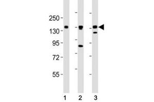 Titration of the AXL antibody may be required due to differences in protocols and secondary/substrate sensitivity.\. Western blot: 1:2000