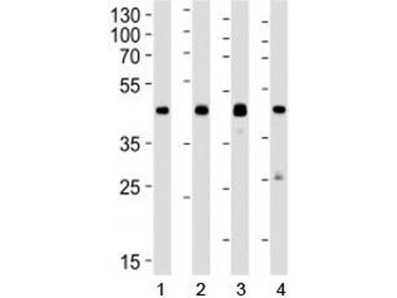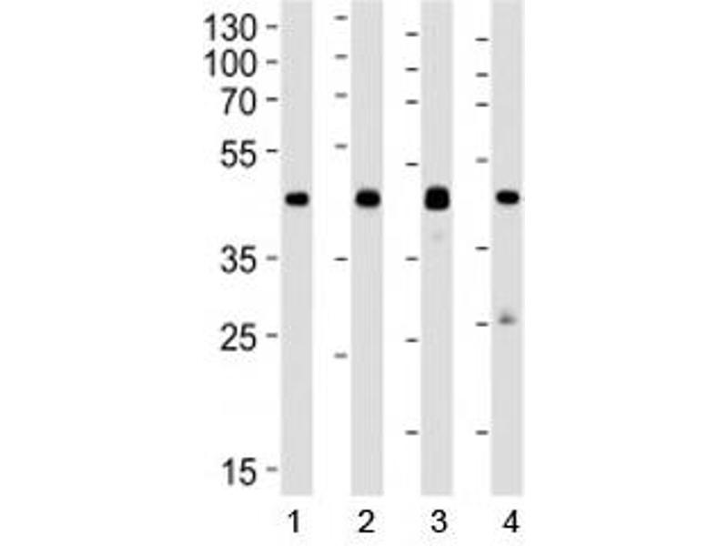 Titration of the CREB1 antibody may be required due to differences in protocols and secondary/substrate sensitivity.\. Western blot: 1:1000