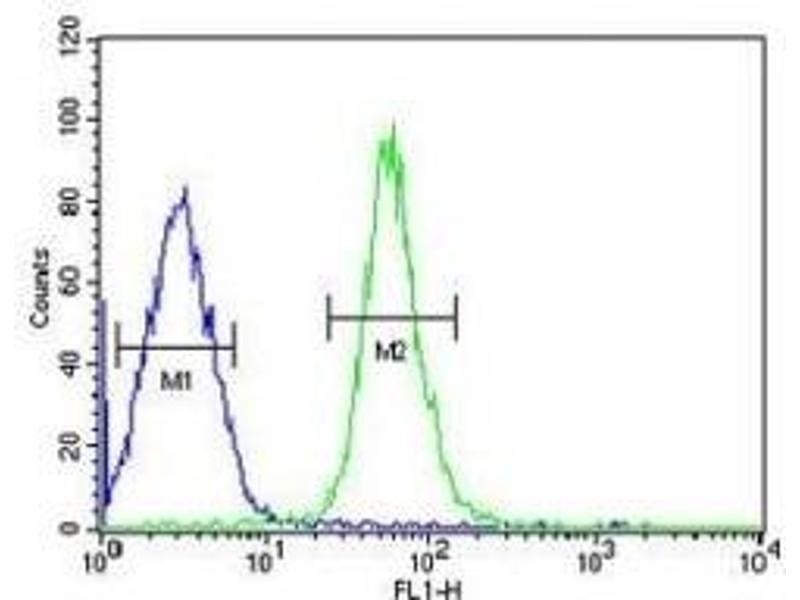- Titration of the HMGA2 antibody may be required due to differences in protocols and secondary/substrate sensitivity.\. Western blot: 1:1000,Flow Cytometry: 1:10-1:50