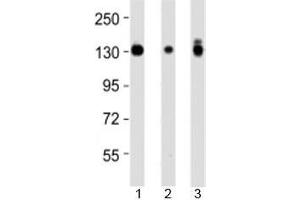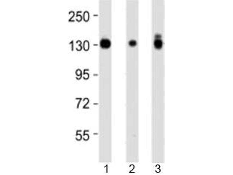 Titration of the Integrin alpha 3 antibody may be required due to differences in protocols and secondary/substrate sensitivity.\. Western blot: 1:2000-4000