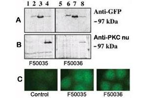 Aliquot the PKC nu antibody and store frozen at -20°C or colder. Avoid repeated freeze-thaw cycles.