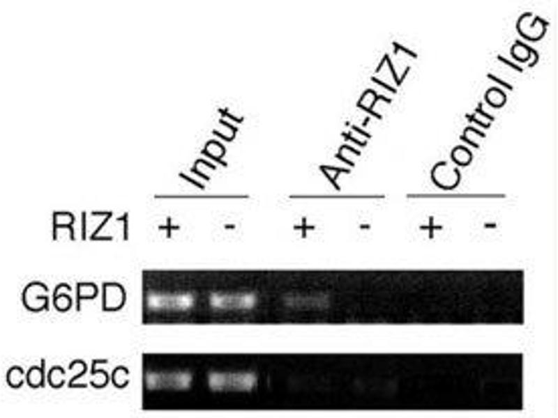 - Titration of the RIZ1 antibody may be required due to differences in protocols and secondary/substrate sensitivity.\. Western blot: 1:1000,ChIP: 1:100