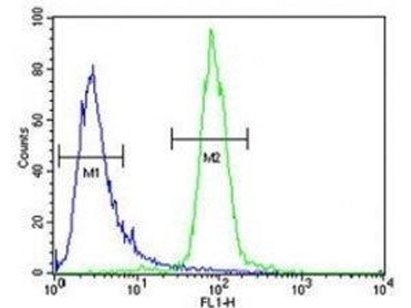 Titration of the RPEL1 antibody may be required due to differences in protocols and secondary/substrate sensitivity.\. Western blot: 1:1000,Flow Cytometry: 1:10-1:50
