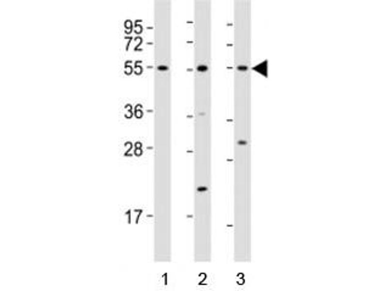 Titration of the Runx1 antibody may be required due to differences in protocols and secondary/substrate sensitivity.\. Western blot: 1:2000