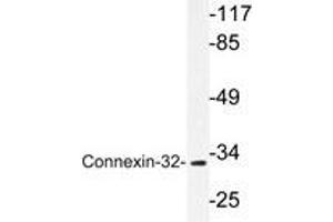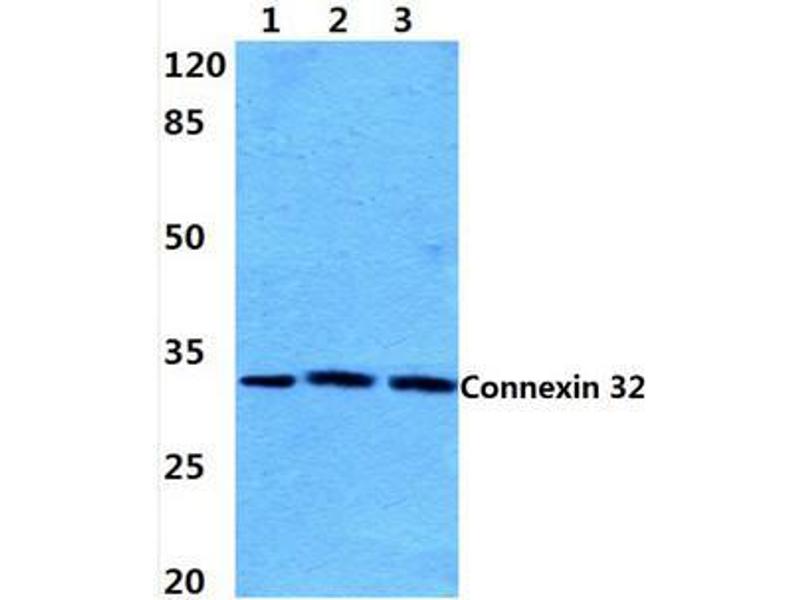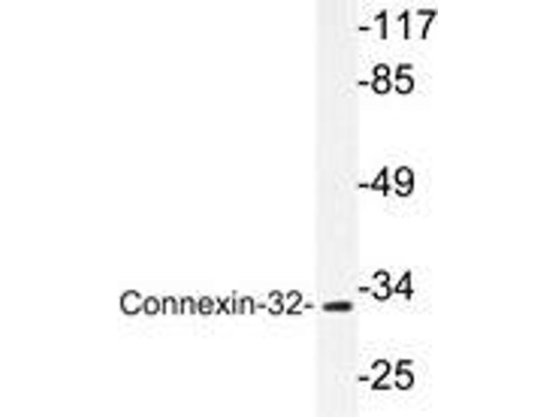Gap junctions are aggregations of intercellular channels that directly connect the cytoplasm of adjacent cells. Gap junctions coordinate cellular and organ function in tissues and are involved in metabolic cooperation between cells, synchronization of cellular physiological activities, growth control and developmental regulation. The gap junction channels allow intercellular exchange of ions, nucleotides and small molecules between adjacent cells. Unlike other membrane channels, intercellular channels span two plasma membranes and require the contribution of hemichannels, called connexons, from both participating cells. These channels are permeate to molecules as large as 1 kD, and they have been detected in virtually every cell type in mammals, except mature skeletal muscle, spermatozoa and erythrocytes. Two connexons interact in the extracellular space to form the complete intercellular channel. Each connexon is composed of six similar or identical proteins, which are termed connexins. Connexins (Cx) are a multi-gene family of highly related proteins ranging between molecular weights of 26 and 70 kD. At least a dozen distinct connexin genes have been identified and many are expressed in a tissue-specific manner. Two distinct lineages have been identified in mammals. One termed class I or beta group to which Cx26, Cx30, Cx31, Cx31.1 and Cx32 belong, and the other termed class II or alpha group, represented by Cx33, Cx37, Cx40, Cx43 and Cx46.Synonyms: Connexin-32, GAP junction 28 kDa liver protein, Gap junction beta-1 protein