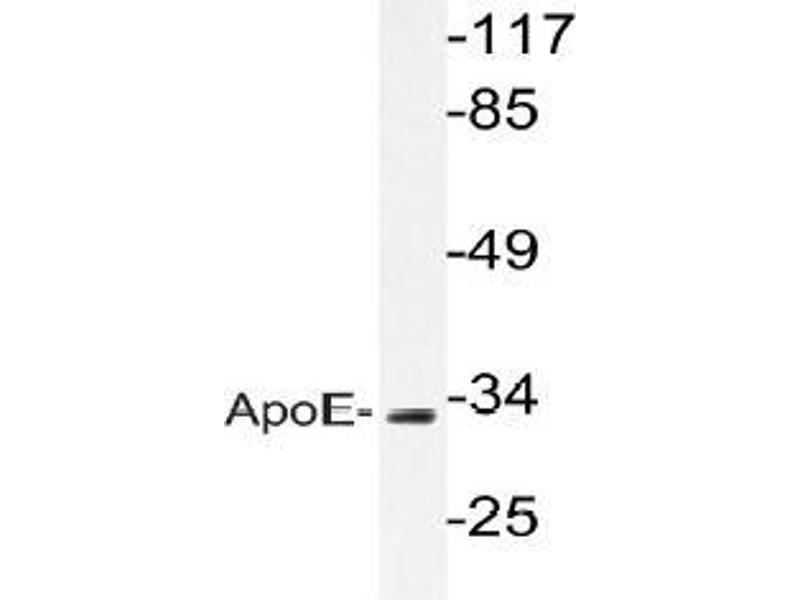 Apolipoprotein-E (apoE) is a protein component of plasma lipoproteins that mediates the binding, internalization and catabolism of lipoprotein particles. It can serve as a ligand for several lipoprotein receptors, including the LDL (apoB/E) receptor and the hepatic apoE (chylomicron remnant) receptor. apoE is produced in most organs and occurs in all plasma lipoprotein fractions, constituting 10-20 % of VLDL (very low density lipoprotein) and 1-2 % of HDL (high density lipoprotein). Three major isoforms of apoE have been described in human (E2, E3 and E4) which differ by one to two amino acids. Estrogen receptor has been shown to upregulate apoE gene expression via the ERamediated pathway, indicating a potential role for apoE in atherosclerosis. This is consistent with studies in mice in which plasma apoE levels were raised, thereby protecting the mice from diet-induced atherosclerosis. apoE has also been shown to be a potent inhibitor of proliferation and thus may play a role in angiogenesis, tumor cell growth and metastasis.Synonyms: Apo-E, ApoE