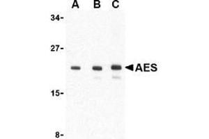 ELISA. Western Blot: AES antibody can be used for the detection of AES at 1 - 2 μg/mL. Immunocytochemistry. Other applications not tested. Optimal dilutions are dependent on conditions and should be determined by the user.