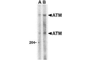 - ATM antibody was raised against a peptide corresponding to 14 amino acids near the carboxy terminus of human ATM.
