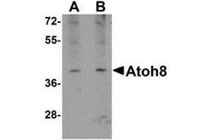 - ATOH8 antibody was raised against a 15 amino acid peptide near the carboxy terminus of human ATOH8.