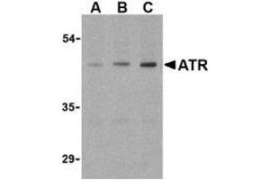 - ATR antibody was raised against a peptide corresponding to 13 amino acids near the center of human ATR. It will recognize all three isoforms.