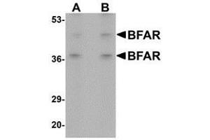 - BFAR antibody was raised against a 14 amino acid peptide near the carboxy terminus of human BFAR.