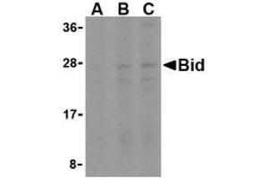 ELISA. Western Blot: Bid antibody can be used for detection of Bid at 1 to 2 μg/mL. Other applications not tested. Optimal dilutions are dependent on conditions and should be determined by the user.