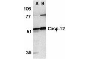 ELISA. Western Blot: Caspase-12 antibody can be used for detection of caspase-12 at 0.5 to 1 μg/mL. Immunohistochemistry. Other applications not tested. Optimal dilutions are dependent on conditions and should be determined by the user.