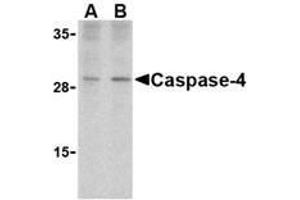 ELISA. Western Blot: Casp-4 antibody can be used for the detection of Caspase-4 at 2 μg/mL. Depending on cell lines or tissues used, other cleavage products may be observed. Immunohistochemistry. Other applications not tested. Optimal dilutions are dependent on conditions and should be determined by the user.