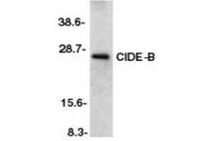 ELISA. Western Blot: CIDE-B antibody can be used for detection of CIDE-B at 1/500 to 1/1000dilution. An approximately 25 kDa band can be detected. Other applications not tested. Optimal dilutions are dependent on conditions and should be determined by the user.