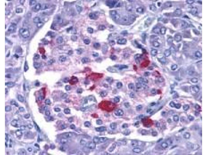 ELISA. Western 1 to 2 μg/mL. HepG2 and 3T3 cell lysates can be used as positive control and a 35 kDa band can be detected. Immunohistochemistry.