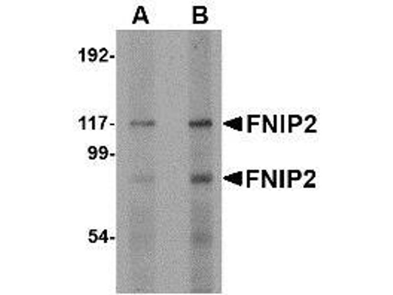 - FNIP2 antibody was raised against a 16 amino acid peptide near the carboxy terminus of human FNIP2.