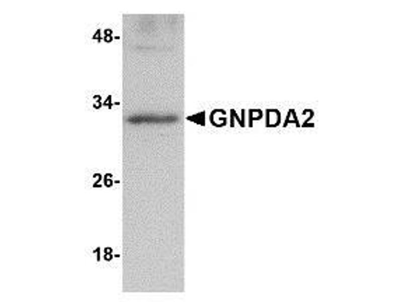 - GNPDA2 antibody was raised against an 8 amino acid peptide near the carboxy terminus of human GNPDA2.