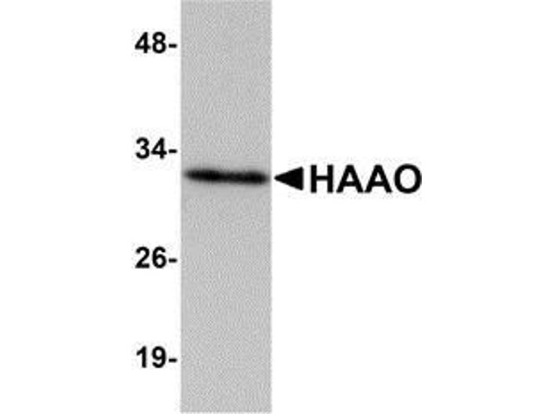 HAAO (3-Hydroxyanthranilate 3,4-dioxygenase) is a monomeric cytosolic protein of the family of intramolecular dioxygenases containing non-heme ferrous iron. It is widely distributed in peripheral organs, such as liver and kidney, and is present in low amounts in the central nervous system. This enzyme participates in tryptophan metabolism. It employs one cofactor, iron. HAAO catalyzes the synthesis of quinolinic acid (QUIN) from 3-hydroxyanthranilic acid. QUIN is an excitotoxin whose toxicity is mediated by its ability to activate glutamate N-methyl-D-aspartate receptors. Increased cerebral levels of QUIN may participate in the pathogenesis of neurological and inflammatory disorders. HAAO has been suggested to play a role in disorders associated with altered tissue levels of QUIN. Furthermore, recent study shows that HAAO are excellent candidate biomarkers for detecting ovarian cancer.Synonyms: 3-HAO, 3-hydroxyanthranilate 3, 3-hydroxyanthranilate oxygenase, 3-hydroxyanthranilic acid dioxygenase, 4-dioxygenase, HAD