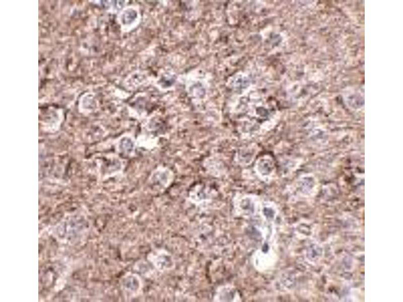 IL-16 was initially identified as a chemotactic cytokine, but is now known to possess a wide range of activities. Later studies have more fully characterized IL-16 as an immunomodulatory cytokine that contributes to the regulatory process of CD4+ T cell recruitment and activation at sites of inflammation in association with asthma and several autoimmune diseases. The precursor of IL-16 (pro-IL-16) is thought to be cleaved towards the C-terminal region by Caspase-3, releasing a 20 kDa active form that binds to and signals through CD4. Besides acting as a chemotactic cytokine, IL-16 is thought to also be involved in the regulation of T cell proliferation and multiple infectious, immune-mediated, and autoimmune inflammatory disorders including irritable bowel syndrome, systemic lupus erythematosus, and neurodegenerative disorders. At least two isoforms of IL-16 are known to exist, the longer isoform (also known as NIL-16) is detected only in neurons of the cerebellum and hippocampus. This antibody will only detect the NIL-16 isoform.Synonyms: IL-16, LCF, Lymphocyte chemoattractant factor