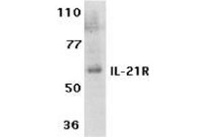 - IL-21 receptor antibody was raised against a synthetic peptide corresponding to amino acids 97 to 111 of human IL-21 receptor precursor.