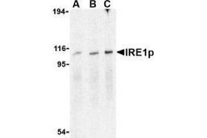 Accumulation of malfolded proteins in the endoplasmic reticulum (ER) activates the unfolded protein response (UPR) and the upregulation of the ER molecular chaperones GRP78 and GRP 94 (1,2). These proteins are normally bound to ER transmembrane proteins such as IRE1p and ATF6 (3,4) but ER stress causes their dissociation. This allows IRE1p, a serine-threonine protein kinase to transduce the unfolded protein signal from the ER to the nucleus. IRE1p also has an endoribonuclease activity that is required to splice X-box binding protein (XBP1) mRNA converting it to a potent UPR transcriptional activation (5). Depletion of IRE1p through the expression of a dominant negative form of IRE1p has no effect on transfected cells, but cell death via apoptosis occurs under stress conditions that cause unfolded proteins to accumulate in the ER (6). Two alternatively spliced transcript variants encoding different isoforms have been found for this gene.Synonyms: Endoplasmic reticulum-to-nucleus signaling 1, IRE1a, IRE1p, Inositol-requiring protein 1, Ire1-alpha, Serine/threonine-protein kinase/endoribonuclease IRE1