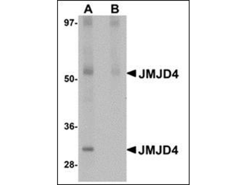 - JMJD4 antibody was raised against a 17 amino acid peptide from near the amino terminus of human JMJD4.