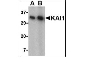 KAI1 was initially identified from a T-cell activation study as a four-transmembrane protein that plays an accessory role in T-cell activation, and was later determined to act as a cancer metastasis suppressor gene. This protein is ubiquitously expressed at moderate to high levels in most tissues, but its expression is downregulated during tumor progression. The loss of KAI1 and p53 is associated with poor survival for prostate and other cancer patients. Recently, KAI1 was found to interact with DARC, the Duffy antigen for chemokines using a yeast two hybrid screen. It is thought that tumor cells dislodged from the primary tumor and expressing KAI1 interact with DARC proteins expressed on vascular cells, transmitting a senescent signal to the tumor cells, while tumor cells that have lost KAI1 expression can proliferate and potentially give rise to metastases. At least two isoforms of KAI1 are known to exist.Synonyms: C33 antigen, IA4, Inducible membrane protein R2, KAI1, Kangai-1, Metastasis suppressor Kangai-1, SAR2, ST6, Suppressor of tumorigenicity protein 6, TSPAN27, Tetraspanin-27