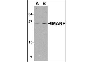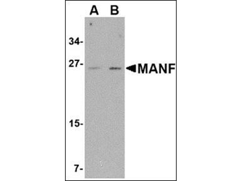 MANF, also known as ARMET, was initially identified as a protein containing an arginine-rich region that was highly mutated in a variety of tumors. More recently it was identified as a mesencephalic astrocyte-derived neurotrophic factor with selectivity for dopaminergic neurons, similar to glial cell line-derived neurotrophic factor (GDNF) and CDNF. In rat brain slices, MANF enhanced nigral gamma-aminobutyric acid release. Like GDNF and CDNF, MANF has selective neuroprotective activity for dopaminergic neurons suggesting that it may be indicated for the treatment of Parkinson's disease. Expression of MANF has also been shown to be induced during ER stress, suggesting that it may play a role in protein quality control during ER stress.Synonyms: Arginine-rich protein, MANF, Mesencephalic astrocyte-derived neurotrophic factor
