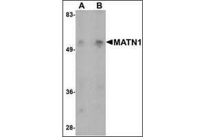 - MATN1 antibody was raised against a 12 amino acid peptide from near the amino terminus of human MATN1.