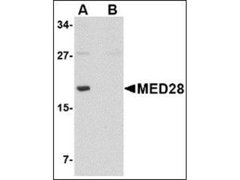 The mediator complex is a multi-protein transcriptional co-activator that is expressed ubiquitously in eukaryotes from yeast to mammals and is required for induction of RNA polymerase II (pol II) transcription by DNA binding transcription factor. One of the proteins in this complex is MED28, also known as Magicin. MED28 is expressed in many cell lines and tissues. It has been shown that a down-regulation of MED28 expression in NIH3T3 cells results in a significant induction of several genes associated with smooth muscle cell differentiation and conversely its over-expression represses expression of SMC genes. MED28 can also form a ternary complex with Grb2 and Merlin, the neurofibromatosis 2 tumor suppressor protein, indicating that MED28 may play a role in Merlin's tumor suppressive activity. MED28 has also been recently identified as an HIV dependency factor (HDF), suggesting that MED28 may be an important drug target in HIV treatment. At least two isoforms of MED28 are known to exist.Synonyms: EG1, Endothelial-derived protein 1, FKSG20, Mediator complex subunit 28, Mediator of RNA polymerase II transcription subunit 28, Merlin and Grb2-interacting cytoskeletal protein, Tumor angiogenesis marker EG-1