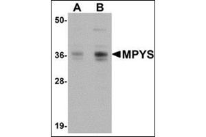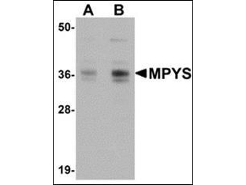 - MPYS (TMEM173 / STING) is a recently identified plasma membrane tetraspanner that is associated with major histocompatibility complex class II (MHC-II) and mediates its transduction of apoptotic signals. It has also been found to be associated with VISA, a mitochondrial protein that acts as an adaptor in virus-triggered signaling. MPYS also interacts with IRF3 and recruits the kinase TBK1 to the VISA-associated complex, acting as a critical mediator of virus-triggered IRF3 activation and interferon (IFN) expression. It is thought that the binding of nucleic acid to the innate immune protein RIG-I causes complex formation between RIG-I, VISA, and MPYS. This complex then recruits TBK1 to phosphorylate IRF3 which then directly activates IFN transcription. At least three isoforms of MPYS are known to exist.Synonyms: MITA, Mediator of IRF3 activation, Stimulator of interferon genes protein, Transmembrane protein 173