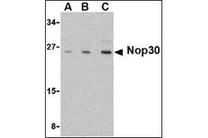 Apoptosis, also known as programmed cell death, plays major roles in development and normal tissue turnover in addition to tumor formation. Apoptosis is regulated by death domain (DD) and/or caspase recruitment domain (CARD) containing molecules and the caspase family of proteases. CARD domain containing cell death regulators include RAIDD, Apaf-1, caspase-9, and caspase-2. A novel CARD domain containing protein was recently identified and designated ARC for apoptosis repressor with CARD. An alternate splicing isoform of ARC was identified as Nop30. While ARC interacts with caspase-2 and -8 and suppresses apoptosis induced by cell death adapters FADD and TRADD and by cell death receptors Fas, TNFR-1 and DR3, Nop30 multimerizes and binds to the splicing factor SRp30c and may act to influence alternative splice site selection in vivo.Synonyms: Apoptosis repressor with CARD, Muscle-enriched cytoplasmic protein, Myp, NOP, Nop30, Nucleolar protein 3, Nucleolar protein of 30 kDa