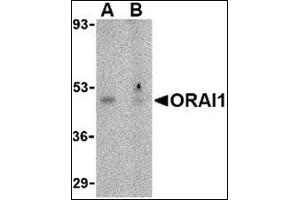 - ORAI1 antibody was raised against a 18 amino acid peptide from near the amino terminus of human ORAI1.