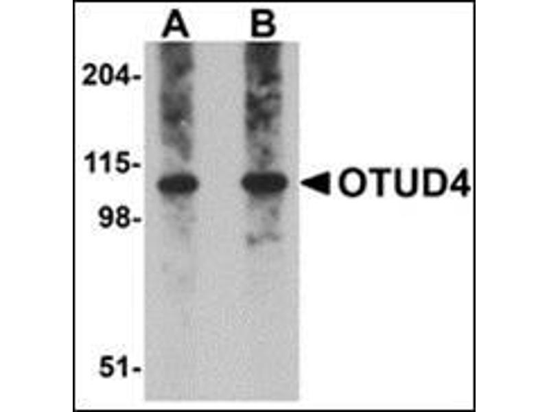 - OTUD4 antibody was raised against an 18 amino acid peptide near the carboxy terminus of human OTUD4.