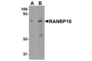 - RANBP10 antibody was raised against a 15 amino acid peptide near the center of human RANBP10.