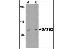 Human special AT-rich sequence-binding protein-2 (SATB2) is a nuclear matrix/scaffold-associated region DNA-binding protein. Like its homolog SATB1, SATB2 selectively binds double-stranded, special AT-rich DNA sequences, but is expressed primarily in a subset of postmitotic, differentiating neurons in the neocortex. Mice deficient in SATB exhibit craniofacial abnormalities and defects in osteoblast differentiation and function. SATB2 also interacts with and enhances the activity of Runx2 and ATF4, two transcription factors that regulate osteoblast differentiation, indicating that SATB2 acts as a molecular node in a transcriptional network regulating skeletal development and osteoblast differentiation. Recent experiments have shown that SATB2 interacts with histone deacetylase 1 and metastasis-associated protein 2, two proteins that are involved in chromatin remodeling, suggesting that SATB2 may also be involved in mediating epigenetic influences during cortical development. At least two isoforms of SATB2 are known to exist.Synonyms: DNA-binding protein SATB2, KIAA1034, Special AT-rich sequence-binding protein 2