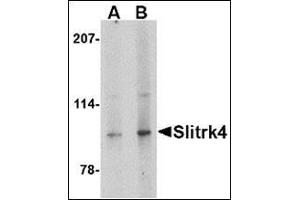 - Slitrk4 antibody was raised against a 13 amino acid peptide from near the carboxy terminus of human Slitrk4.