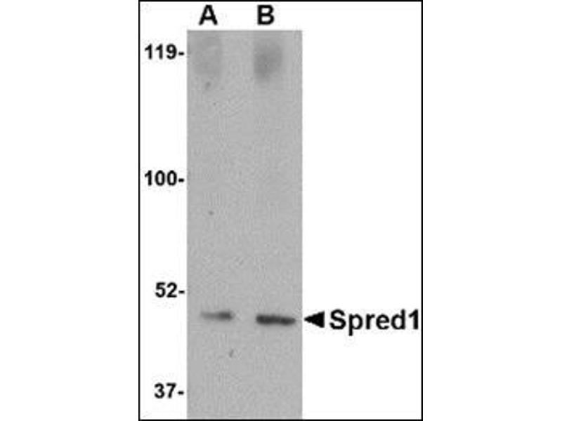 - This antibody detects SPRED1 at center. It is predicted to have no cross-reactivity to Spred2 or Spred3.