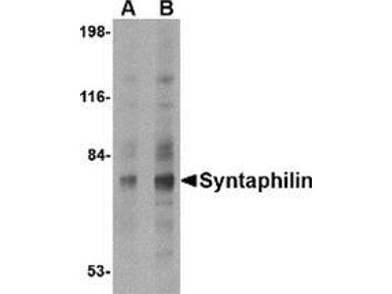 - Syntaphilin antibody was raised against a 18 amino acid peptide from near the amino terminus of human Syntaphilin.