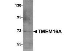 Calcium-activated chloride channels (CaCC) are present in many cell types and mediate physiological functions such as epithelial secretion, sensory signal transduction, and smooth muscle contraction. Subunits of these CaCC's include the transmembrane proteins TMEM16A and TMEM16B. TMEM16A is expressed in epithelial cells of the kidney and lung, pancreas, and sensory neurons and its mRNA is seen in foregut, airway epithelia, and tracheal smooth muscle, mice lacking TMEM16A fail to survive past ten days and show aerophagia and little weight gain. TMEM16A is also overexpressed or amplified in multiple cancers associated with poor survival such as oral cancers and gastrointestinal stromal tumors, suggesting the development of CaCC modulators may be a viable therapeutic strategy.Synonyms: Anoctamin-1, DOG-1, Discovered on gastrointestinal stromal tumors protein 1, ORAOV2, Oral cancer overexpressed protein 2, TAOS2, TMEM16A, Transmembrane protein 16A, Tumor-amplified and overexpressed sequence 2
