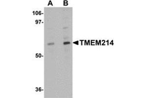 TMEM214 antibody was raised against a 17 amino acid peptide near the amino terminus of human TMEM214.