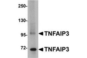- TNFAIP3 antibody was raised against a 14 amino acid peptide near the carboxy terminus of human TNFAIP3.