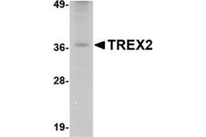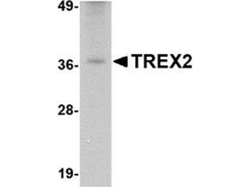 TREX2 is one of two major human 3\' to 5\' exonucleases which are required for checkpoint signaling after DNA damage. While the related protein TREX1 is required for ATR expression and mutations in this gene result in Aicardi-Goutieres syndrome, chilblain lupus, and Cree encephalitis, less is known about TREX2. Like TREX1, TREX2 is ubiquitously expressed in all tissues examined. X-ray crystallography studies of TREX2-single strand DNA complexes revealed that TREX2 binds DNA as a dimer and may act to displace the second DNA strand, suggesting that TREX2 unzips and denatures double stranded DNA and feed the substrate DNA strand into the TREX2 active site. At least two isoforms of TREX2 are known to exist.Synonyms: 3'-5' exonuclease TREX2, Three prime repair exonuclease 2