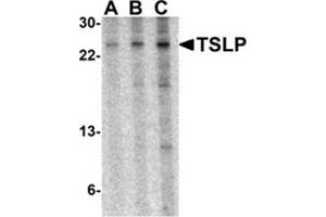- TSLP antibody was raised against a 20 amino acid peptide from near the center of Mouse TSLP.
