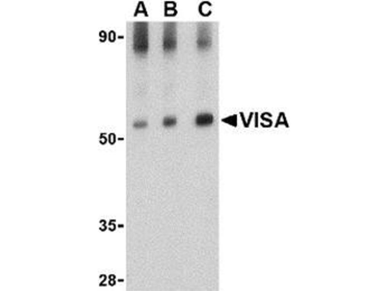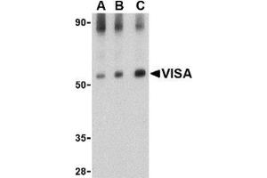 - VISA antibody was raised against a 17 amino acid peptide from near the center of human VISA.