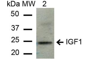 A 1:1000 dilution of ABIN5066645 was sufficient for detection of IGF-1 in 15 μg of mouse liver cell lysates by ECL immunoblot analysis using goat anti-rabbit IgG:HRP as the secondary antibody.
