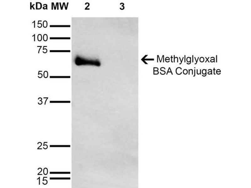 - Specific for Methylglyoxal modified proteins. Does not detect free Methylglyoxal. Does not cross-react with Acrolein, Hexanoyl Lysine, MDA, 4-HHE, 4-HNE, or Crotonaldehyde modified proteins.
