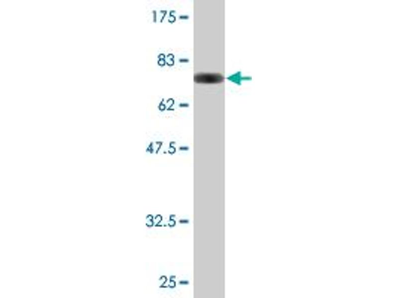 IRF3 (AAH09395, 1 a.a. ~ 452 a.a) full-length recombinant protein with GST tag. MW of the GST tag alone is 26 KDa.